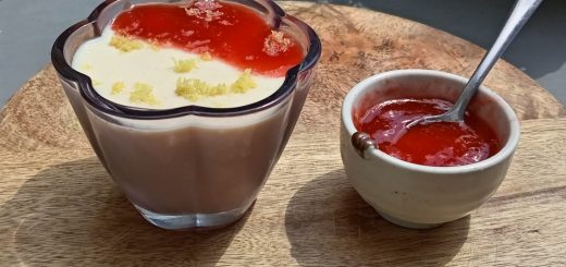 - Add the water and gelatine mix to the yoghurt and crème fraîche. Mix until all the lumps disappear and the mix becomes smooth.